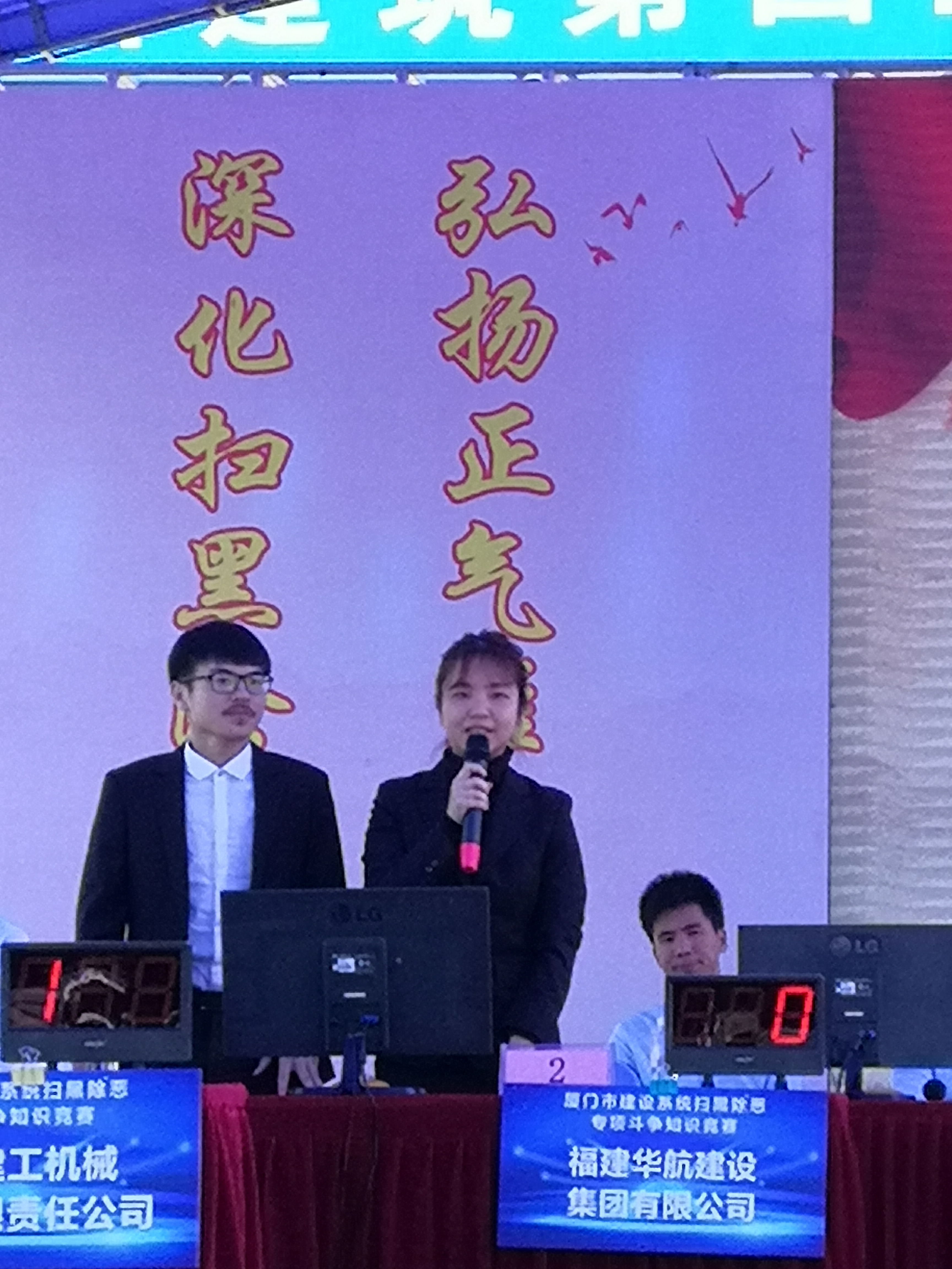2019年1月13日,厦门市建设系统2018年扫黑除恶专项斗争知识竞赛在厦门举办,我方代表潘浓浓、黄爱婷参加了此次竞赛。在首轮机考比赛中,他们二人不负众望,在200多家参赛代表队中脱颖而出,晋级到下一轮比赛。