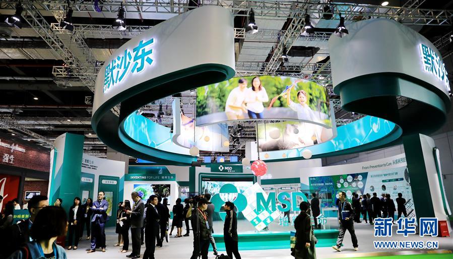 11月6日,参观者在第二届进博会上的跨国药企默沙东展台参观。新华社记者 方喆 摄