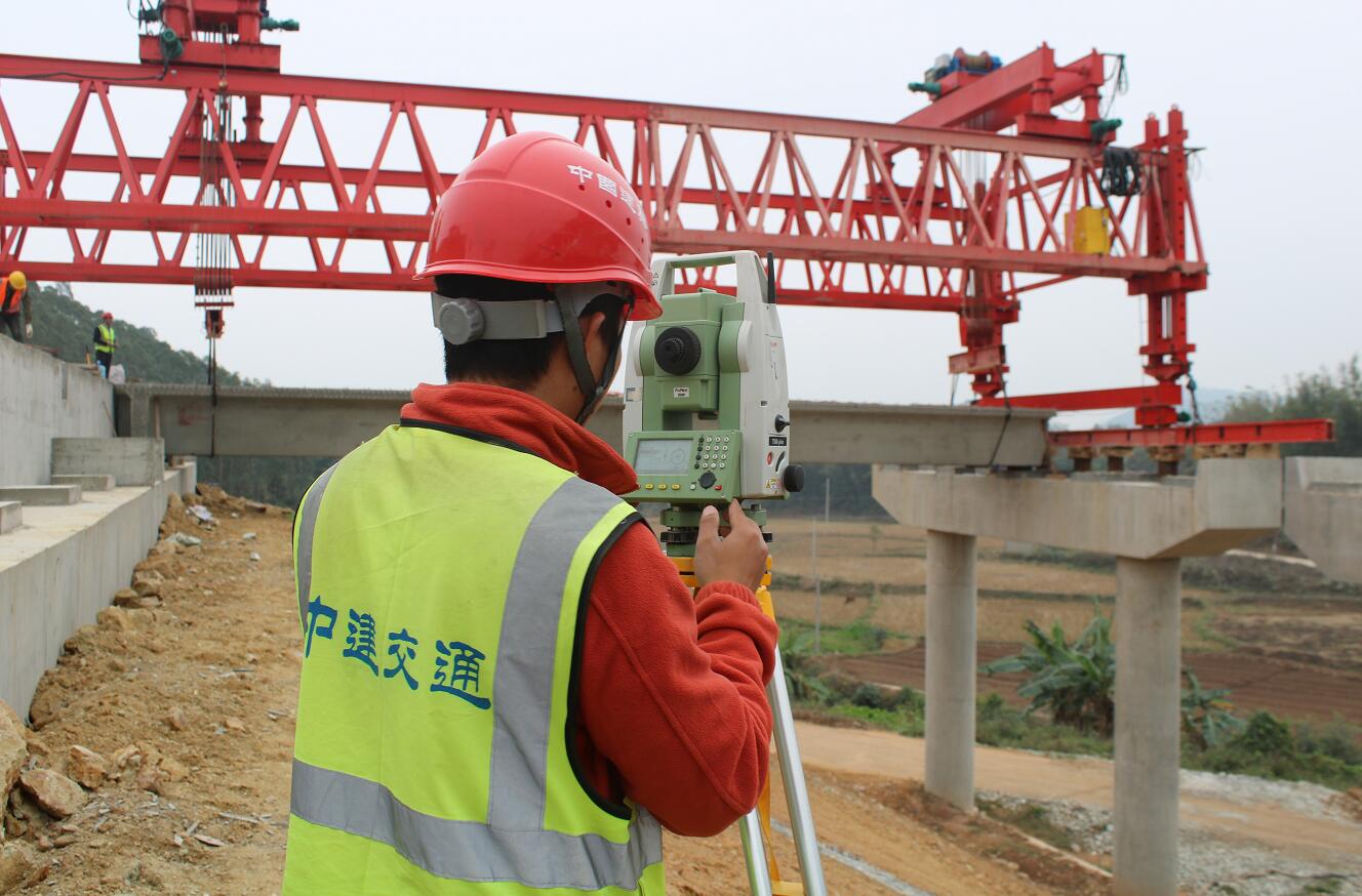 中建交通建设集团承建的大浦高速各项目已编制倒排施工计划。图为已复工的大浦高速1标项目测量人员正在测量作业。(受访者供图)