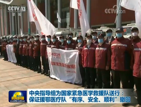 中央指导组为国家紧急医学救援队送行:保证援鄂医疗队“有序、安全、顺利”撤回