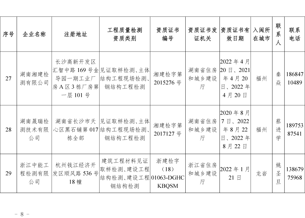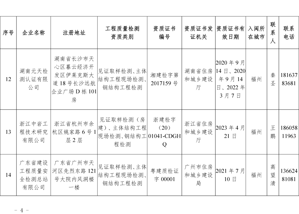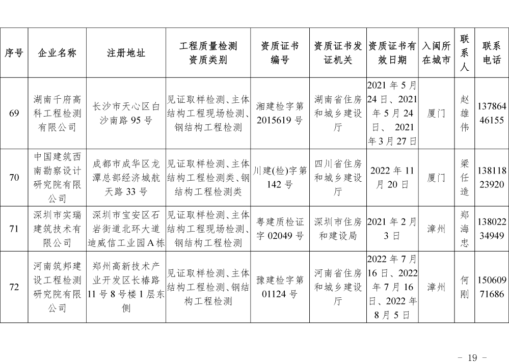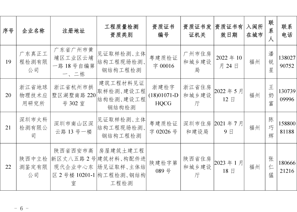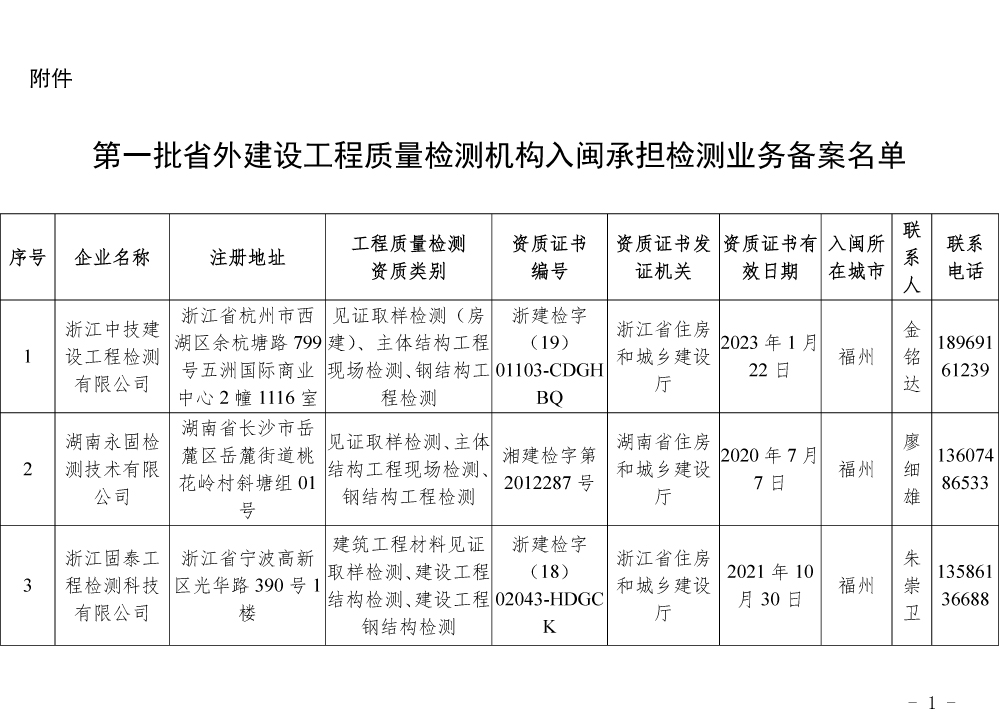 关于公布第一批省外建设工程质量检测机构入闽承担检测业务备案名单的通知