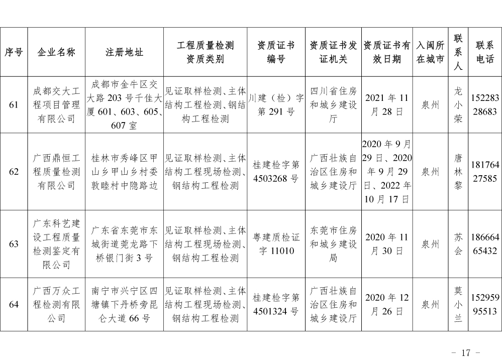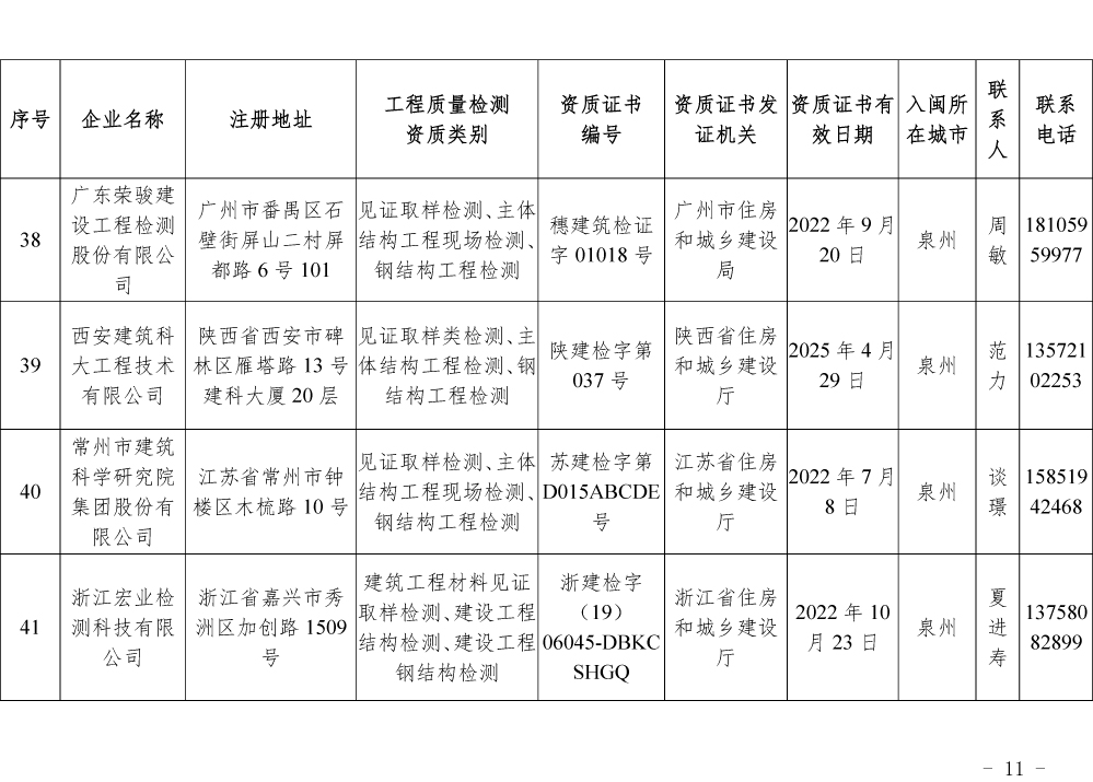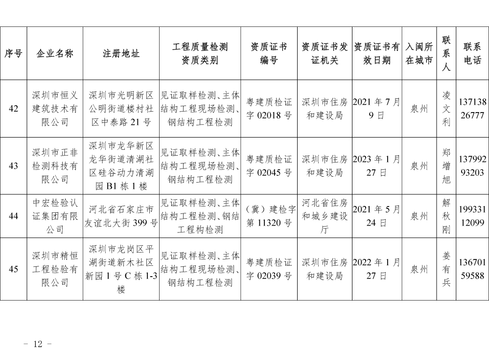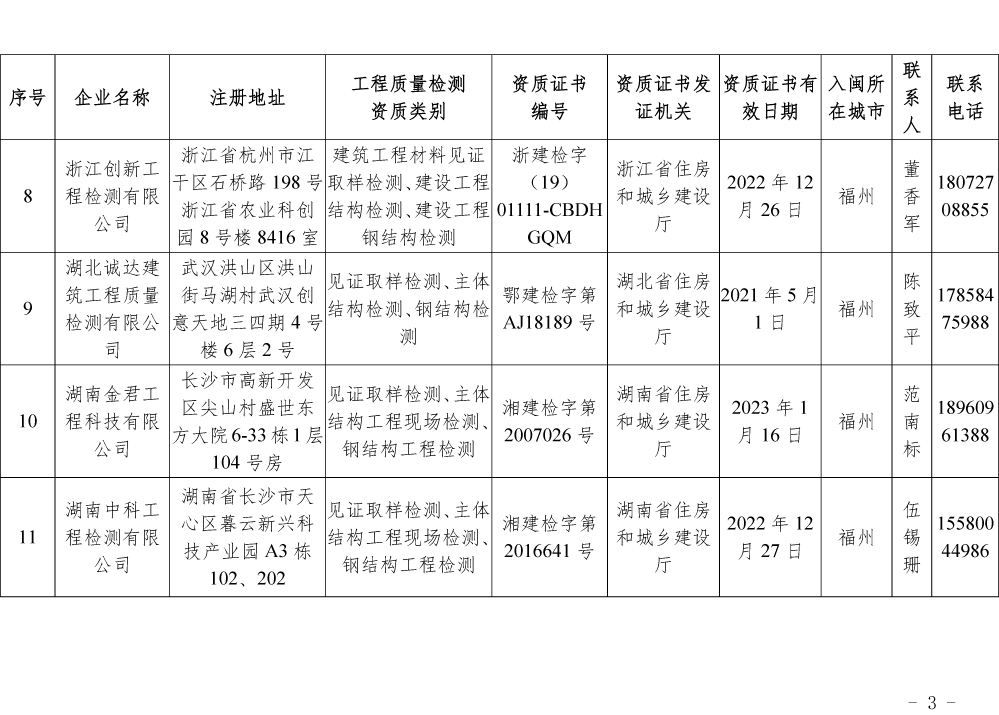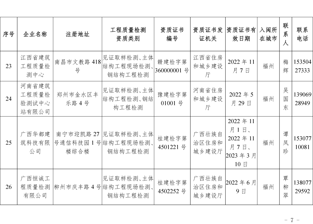 关于公布第一批省外建设工程质量检测机构入闽承担检测业务备案名单的通知