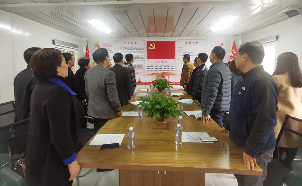 揭牌仪式上,在座党员同志,听取了项目指挥部对项目概况、工程创优规划、进度安排、攻关节点及目前工程推进情况的介绍,并就如何服务和助推项目建设,积极发言。同志们表示,要发扬劳模精神,增强担当意识,为确保“三馆三中心”项目规划目标的实现,早日建成,发挥共产党员应有的作用。共建双方还一致认为,今后要紧紧围绕共建活动的常态化、内容的特色化和方式的务实化,有力促进党建工作和工程施工取得同步有效提升。揭牌仪式结束后,党员同志们还参观了“三馆三中心”项目部。