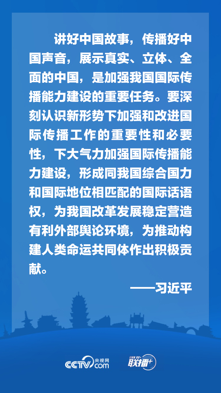 党的十八大以来,我国大力推动国际传播守正创新,理顺内宣外宣体制,打造具有国际影响力的媒体集群,积极推动中华文化走出去,有效开展国际舆论引导和舆论斗争,初步构建起多主体、立体式的大外宣格局,国际话语权和影响力显著提升。面对新的形势和任务,应如何加强我国国际传播能力建设?央视网《联播+》特梳理总书记讲话要点,与您一起学习领悟。