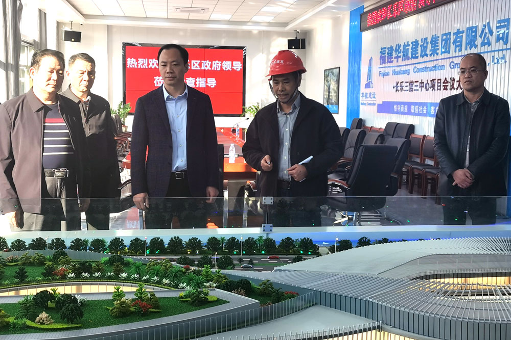 1124日下午,长乐区政府廖海军代区长带队,李育民、林春营等区政府领导一行莅临由福建华航建设集团承建的长乐三馆三中心项目开展调研。长乐区住建局邱群局长、区建发集团李如杰董事长和林祥春总经理、福建华航建设集团陈益魁总经理和项目管理团队陪同调研并作现场讲解。