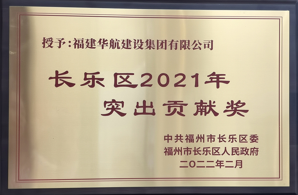 福建华航建设集团获“长乐区2021年突出贡献奖”表彰