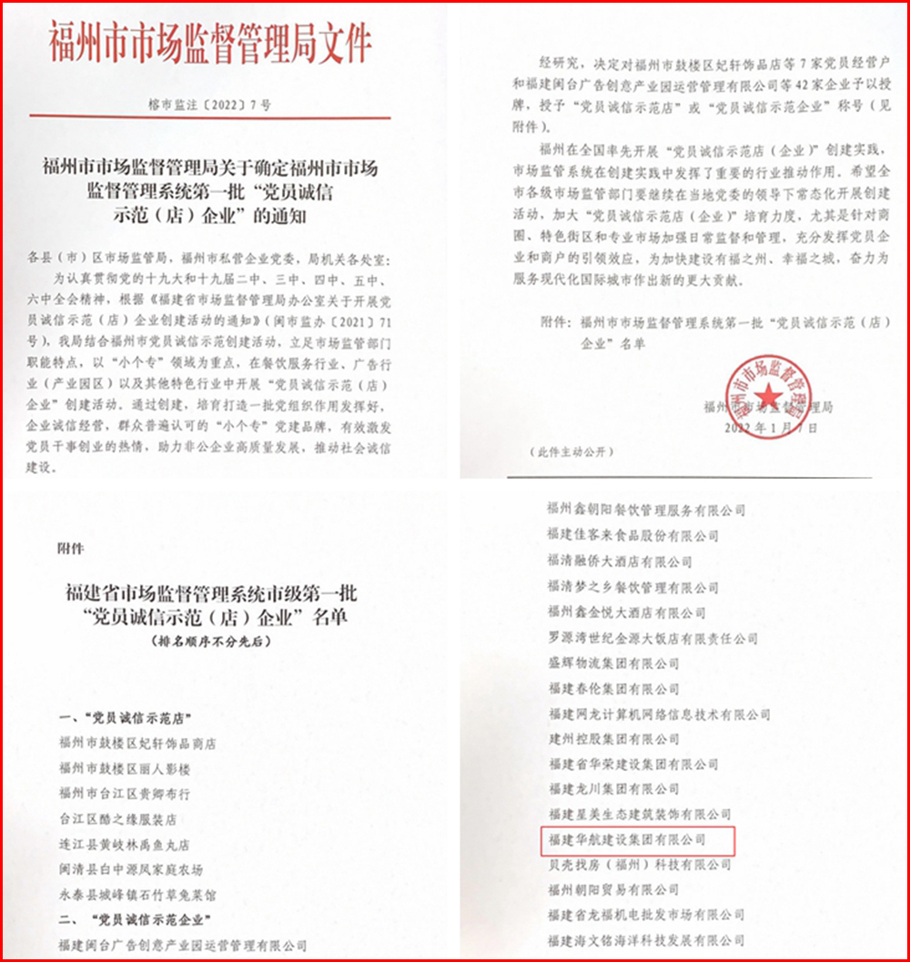 凭借在诚信经营、增产增效、科技创新、社会责任、企业文化等方面的突出表现,福建华航建设集团在年终岁首交接之际,还获得了多项表彰和荣誉。