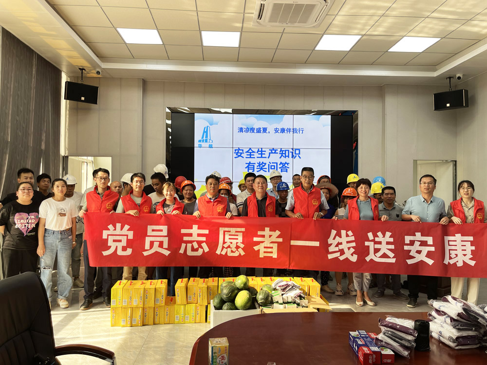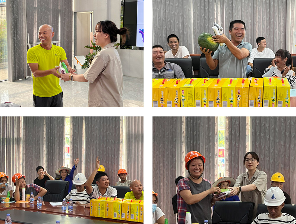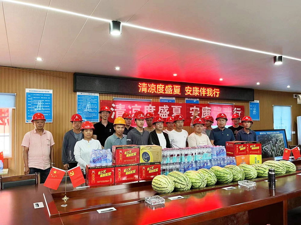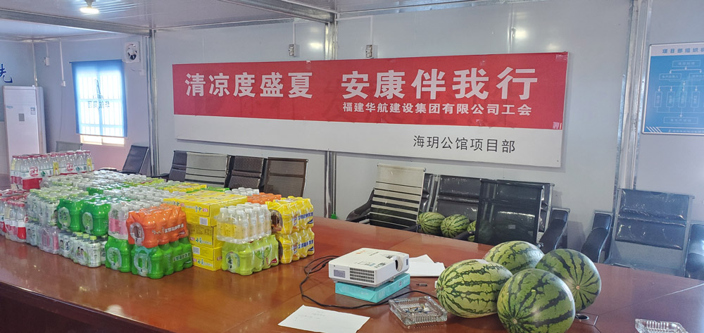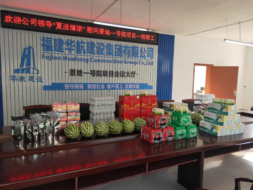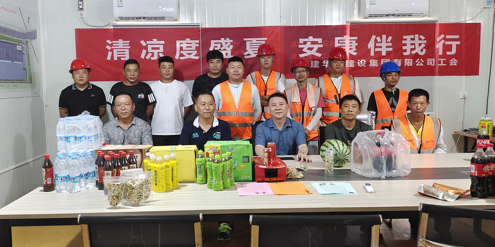 为切实做好一线建筑工人的防暑降温工作,确保各项目工人平安度夏、安全生产,福建华航建设集团在全国各地项目部开展以“安康度盛夏,清凉伴我行”为主题的送清凉活动。20227月至8月,总经理阮伏球、副总经理瞿生亮、党支部副书记郑祖潭、工会主席方剑玲等领导带领项目管理中心、企业技术中心、党群工作部、工会等部门和组织,先后前往景地一号院、福港商务中心、宏捷租赁房、长乐三馆三中心等项目看望慰问一线建筑工人,为他们送去西瓜、解暑药品、清凉饮品等,督促各项目要切实做好防暑降温工作,科学合理进行工作安排,确保大家的身体健康。